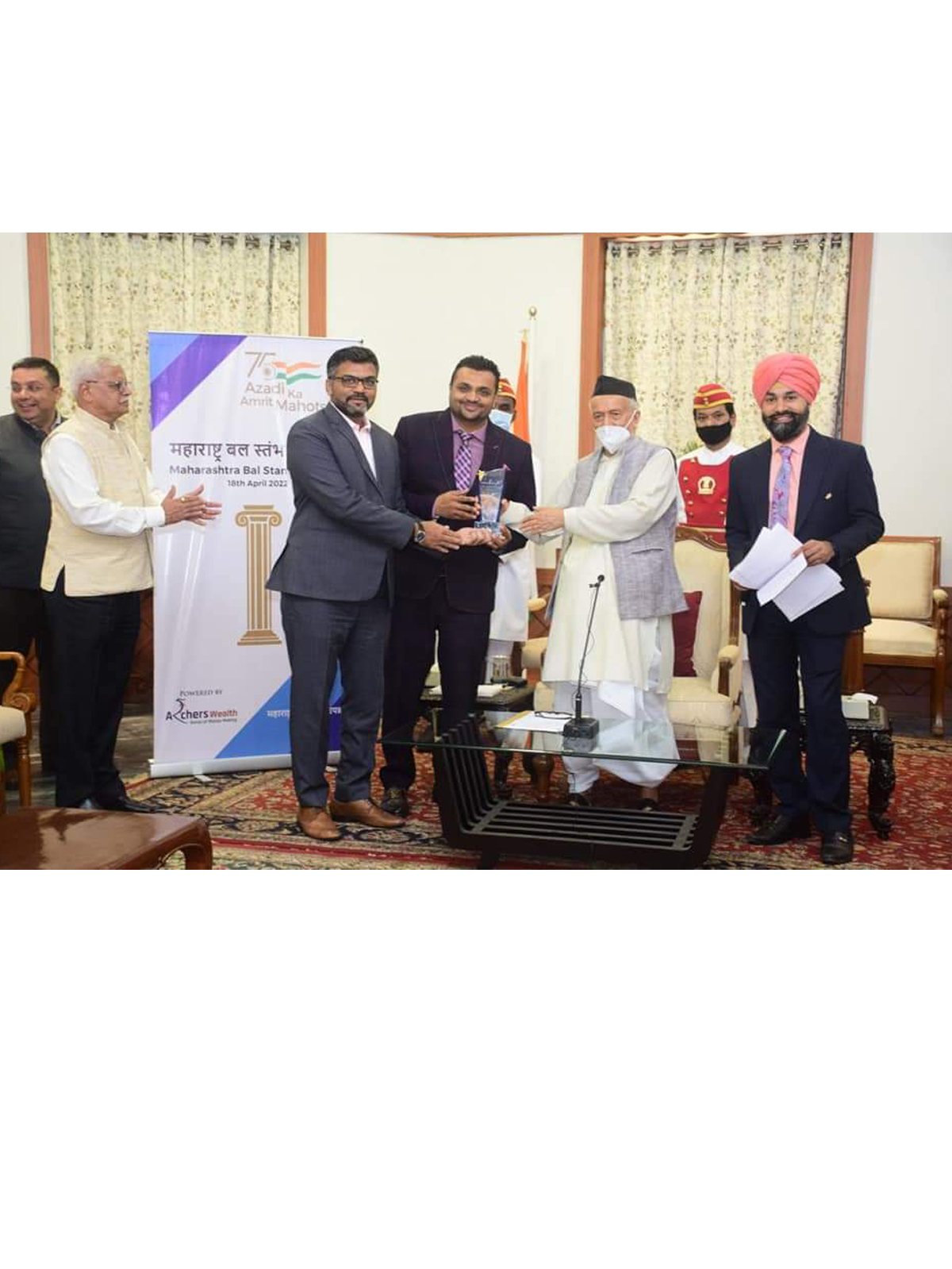 Receiving pillar of strength of maharastra award by governors of maharastra shri bhagat singh koshiyari ji